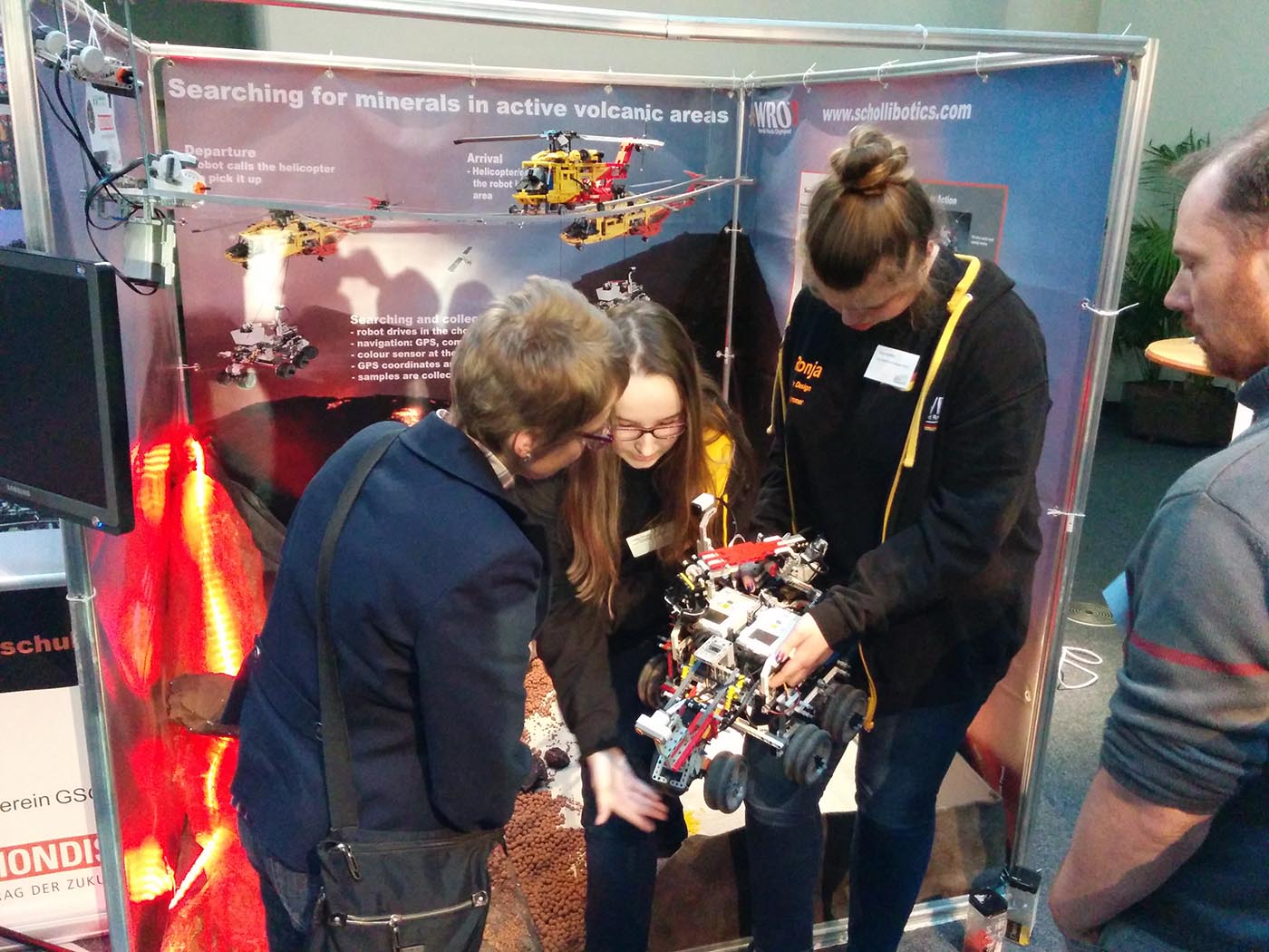 Im Rahmen dieser Veranstaltung haben wir heute die WRO vorgestellt. Dabei gab es zunächst allgemeine Informationen zur WRO, danach eine Einleitung zum WRO Standort Duisburg und als Highlight eine Vorstellung des Open Category Projektes der Schollibotics. Die Schollibotics sind ein WRO Team der Geschwister-Scholl-Gesamtschule Lünen, die in den letzten Jahren u.a. durch das zdi-Netzwerk Perspektive Technik im Kreis Unna gefördert wurden und beim Weltfinale im letzten November in Doha die Bronzemedaille gewonnen haben. Heute hat das Team aus Lünen zum letzten Mal ihr Open Category Modell aufgebaut. Ende der Woche wird alles auseinander genommen, da dann alles für die nächste Saison vorbereitet wird.
