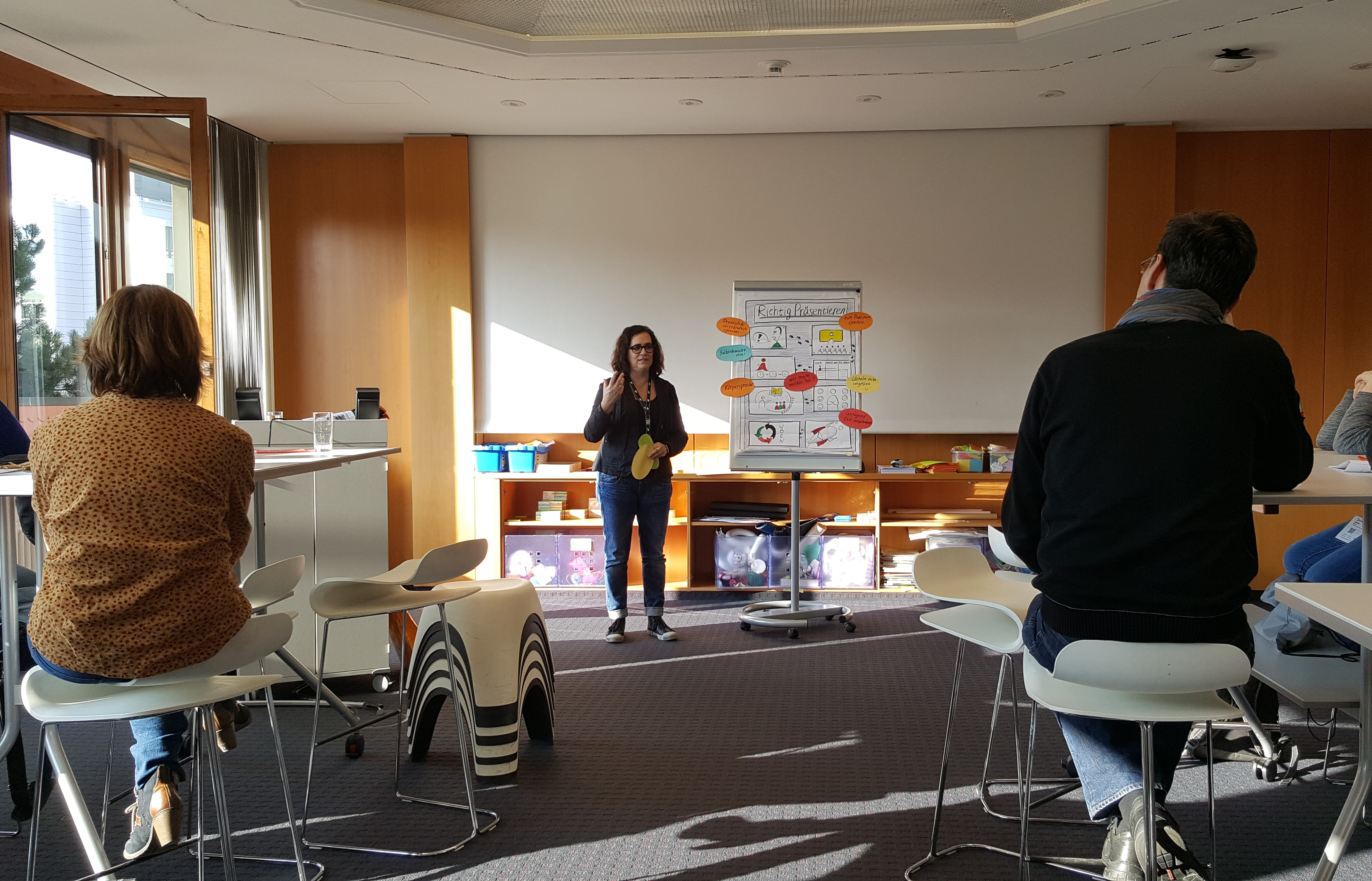 Beim letzten Punkt der Tagesordnung, den Präsentationstechniken, lernten die Teilnehmer das ansprechende Visualisieren, welches sie beispielsweise für ihre späteren Präsentationen bei der WRO anwenden können.
