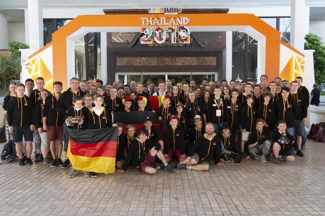 Neben den ersten Eindrücke in der Location stand heute ebenfalls das Delegations-Foto unserer deutschen Teams & Mitreisenden auf dem Programm, denn bei der WRO darf nicht nur ein Gewinnerteam, sondern in den verschiedenen Altersklassen und Wettbewerbskategorien ein oder mehrere Teams zu einem Weltfinale. Das macht die Reise zu einem besonderen Gemeinschaftserlebnis, welches wir traditionell mit gleicher Kleidung (unseren mittlerweile bekannten Sweatshirtjacken) symbolisieren.