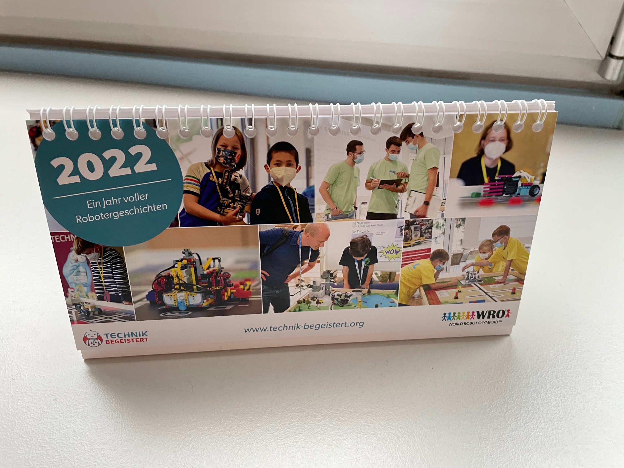 Hier bieten wir einen Monatskalender für das Jahr 2022 an. Er informiert auf 13 Seiten (Deckblatt + Monate) über unseren Verein und die WRO und erinnert an wichtige Termine rund um das Jahr der World Robot Olympiad.